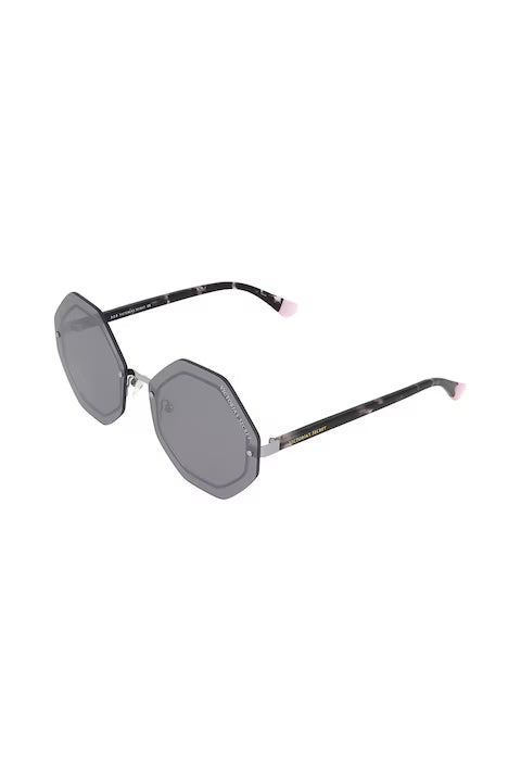 Дамските слънчеви очила Victoria’s Secret от новата колекция носят онова модерно, дръзко и женствено излъчване, типично за марката. Моделът в стилен шестограмен силует впечатлява със сребриста рамка, която плавно преминава в тъмносиви преливащи странични елементи, декорирани с емблематичното лого на Victoria’s Secret. Тъмносивите огледални стъкла придават мистерия и блясък, съчетани с филтър категория 3 и 100% UVA & UVB защита за комфорт през най-слънчевите дни. Хармоничните размери 61-16-140 оформят перфектно балансирана визия, допълнена от 140 мм дължина на рамките, 16 мм мост, 138 мм ширина на рамката, 58 мм височина на стъклата и 61 мм ширина на лещата. Това са очила, които комбинират лукс, характер и силно присъствие — идеалният избор за жена, която иска да блести навсякъде, където се появи.
