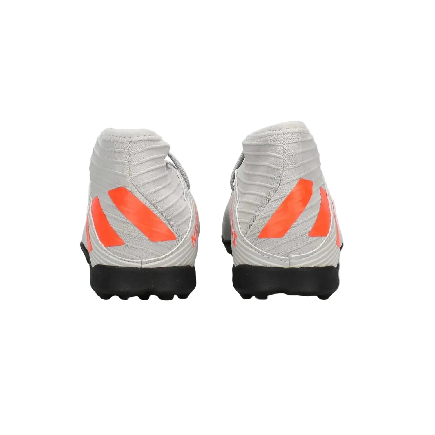 Детските футболни обувки adidas NEMEZIZ 19.3 TF J са създадени за бързи и уверени движения на терена. Лекият и гъвкав дизайн осигурява отличен контрол над топката и стабилност при смяна на посоката, а подметката за изкуствен терен предлага надеждно сцепление по време на игра. Сребристият цвят придава модерен и динамичен стил, който се отличава на терена.