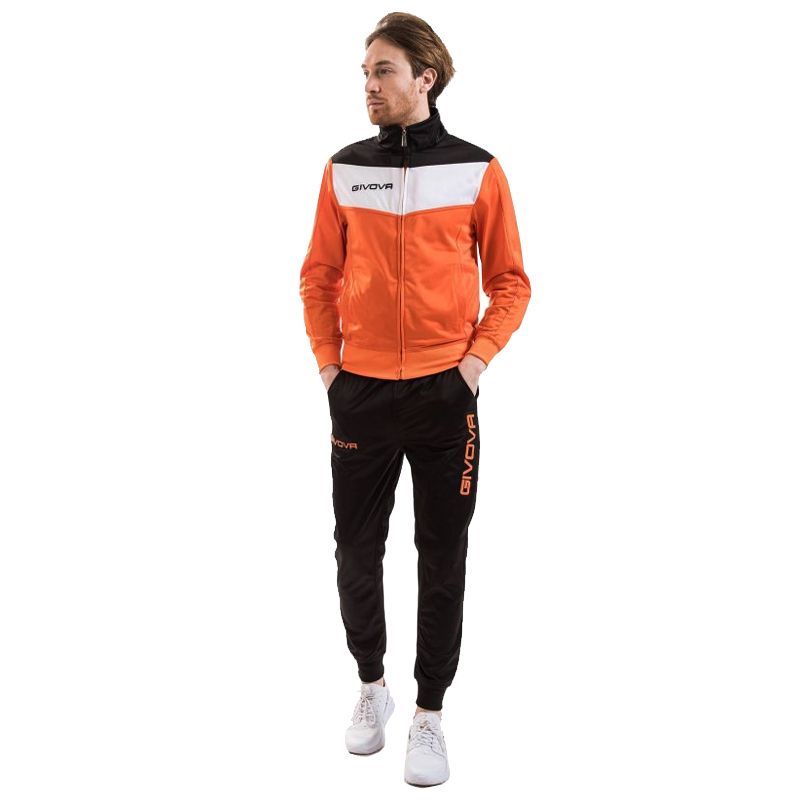 GIVOVA CAMPO в комбинация от черно, оранжево и бяло е спортен комплект, създаден за всеки, който обича да се откроява със стил и динамика. Контрастните цветове му придават модерно и енергично излъчване, подходящо както за тренировки, така и за ежедневно носене. Материята от 100% полиестер е лека, удобна и бързосъхнеща, което осигурява свобода на движение и комфорт дори при интензивно натоварване. Комплектът е отличен избор за спортуване, активна почивка или просто за хора, които ценят удобството и спортната визия.